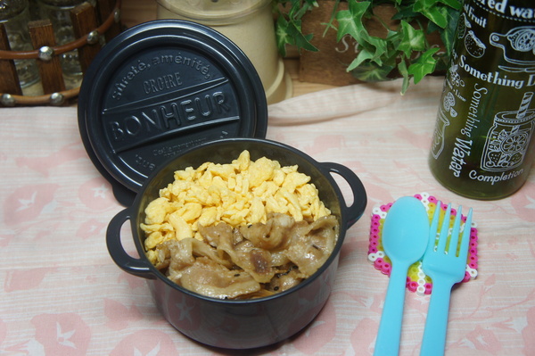 > 甘辛豚と玉子そぼろの2色丼弁当de長男のランチ