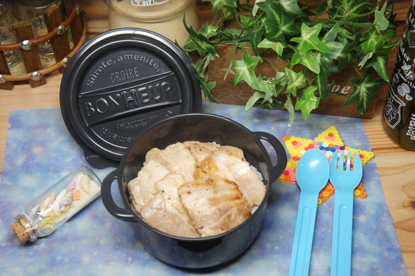 厚切り豚バラの塩チャーシュー丼弁当de長男のランチ