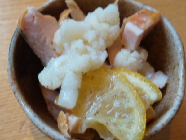 カリフラワーとスモークチキンのレモンマリネ