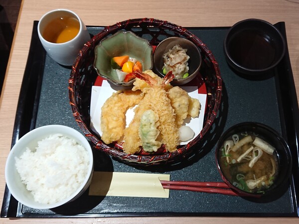 > 参乃ゑん@京都・福知山の天ぷら海老W定食(税込990円)