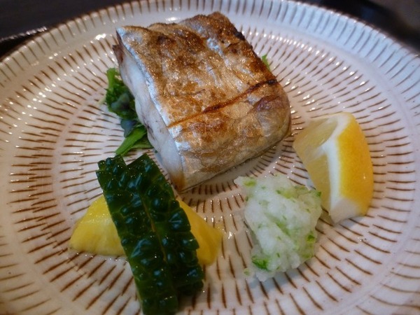 太刀魚の塩焼き ゴーヤとパイナップルの甘酢漬け