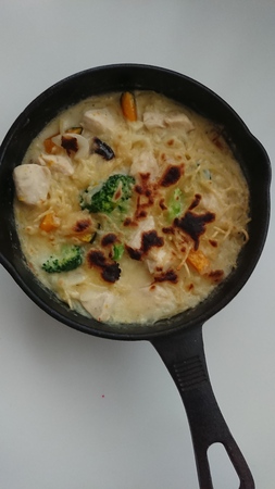 でんぷん質なのでトロミがでるのでホワイトソースに使いグラタンを作ってみました