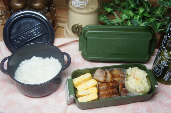 > 牛ブロックのデミグラスソース煮込み&ポテトサラダ弁当de長男のランチ