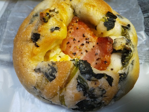 > ほうれん草とベーコンチーズパン