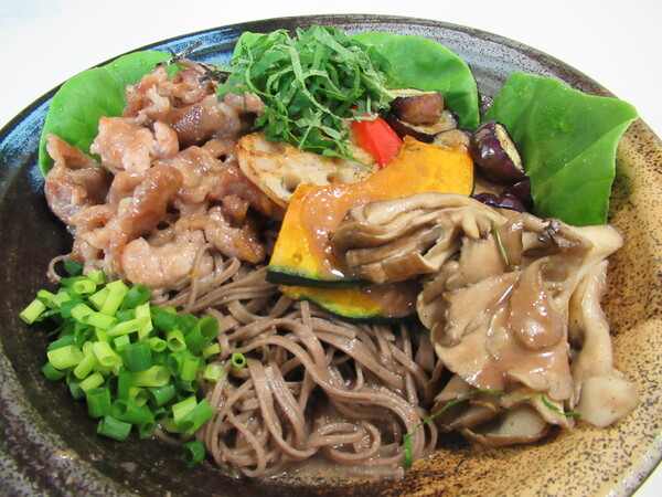 カリカリ豚と秋野菜のくるみだれ蕎麦
