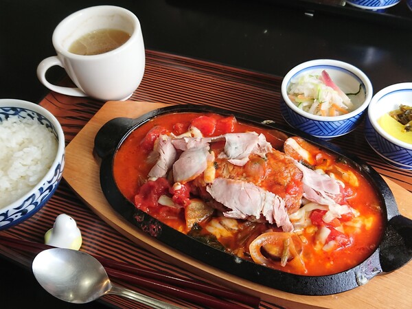 リリィ@京都・福知山の秋ナスとトマトのチーズハンバーグ定食