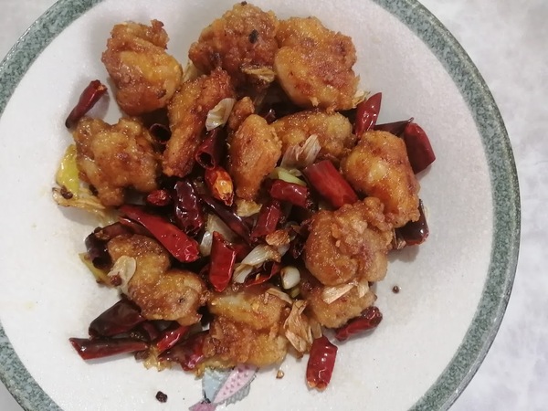 唐辛子と花椒の香りを唐揚げにつけた料理です。