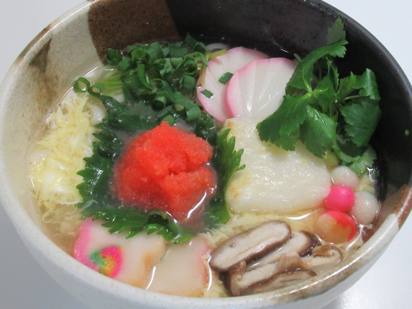 あんかけ卵とじうどんに明太子と焼き餅をのっけて紅白にしてみました。