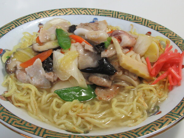今日の麺料理は「五目あんかけスープ焼きそば」です