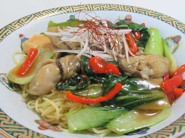 今日の麺料理はいただいた鳥羽の生牡蠣で「牡蠣のあんかけ焼きそば」を作ってみました
