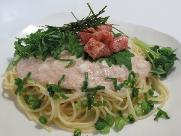 今日の麺料理は「明太マヨとろろの和風パスタ」です