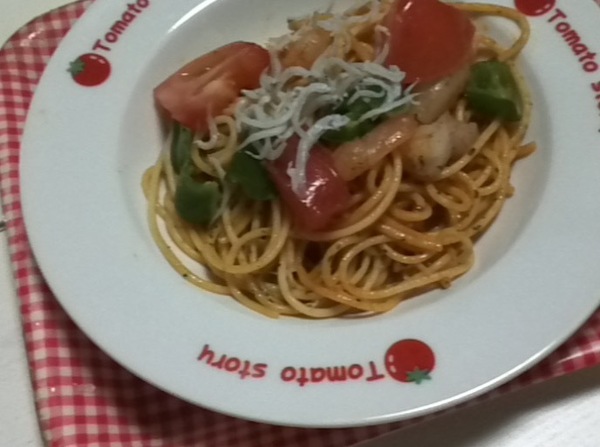 オーマイのマルゲリータ味にピーマンとエビとトマトとしらす載っけたら超美味しかった