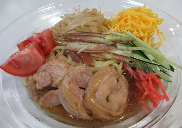 今日の麺料理は「手作り鶏チャーシューの黒酢冷やし中華」です