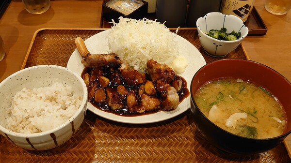 かつ庵の「ごろごろガーリックのポークチョップ定食」