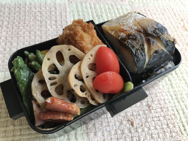 塩鯖、コロッケ、小松菜のベーコン炒め