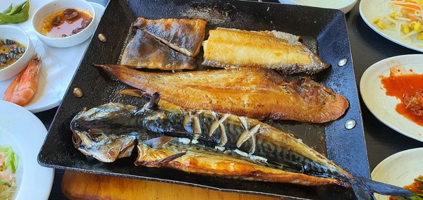 Mackerel, atka mackerel, hairtail, and Eopsetta jordani are grilled in oil.