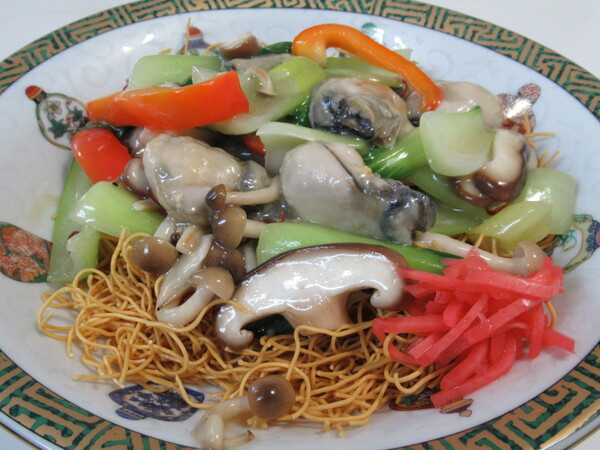 今日の麺料理は「牡蠣ときのこの皿うどん」です