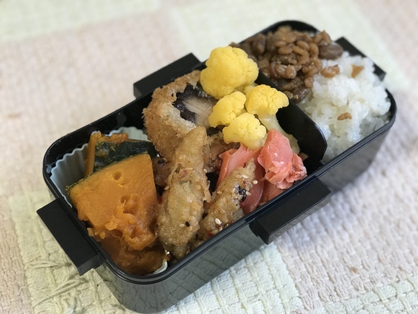 カボチャ、椎茸の肉詰め、甘辛ゴボウ炒め