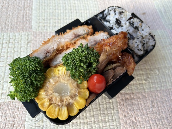 アジフライ、甘辛チキン、独活の醤油バター炒め