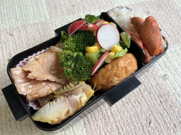 豚肉の生姜焼き、鯖塩、野菜サラダ、焼きタラコ