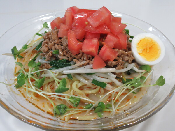 今日の麺料理は「簡単冷やしトマト担々麺」です