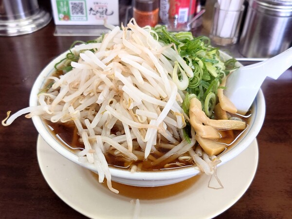たかばしラーメン並の麺バリカタ、ねぎ&もやしW