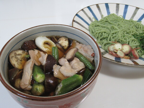 今日の麺料理は「豚バラと夏野菜のつけそうめん」です