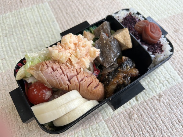 ナスの挟み揚げ、明太ポテト、こんにゃくの煮物