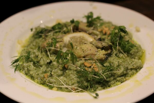 > 牡蠣の塩レモンジェノベーゼリゾット