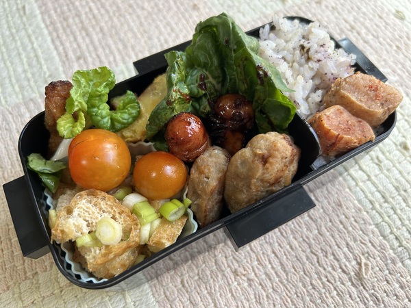 厚揚げとネギの和物、ハンバーグ、鯖の西京焼き
