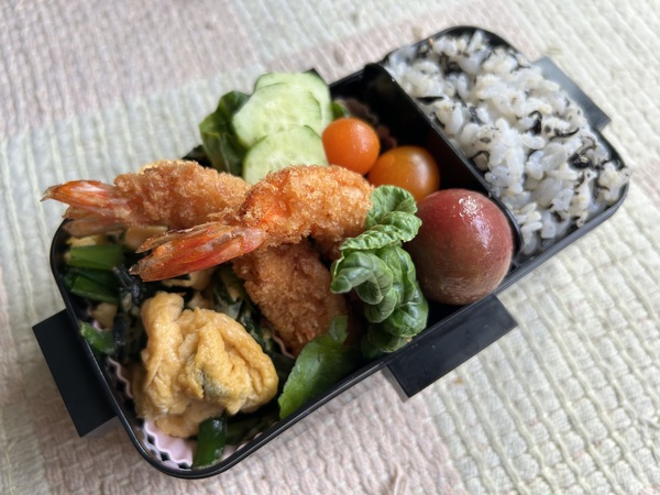 ニラ玉、エビフライ、ゴーヤチャンプルー