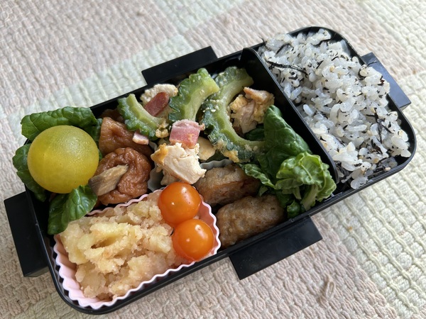 ゴーヤチャンプルー、明太ポテサラ、ハンバーグ