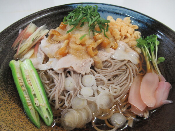 今日の麺料理は「豚しゃぶのなめこおろし掛けそば」です
