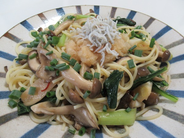 > きのこのしらすおろしパスタ