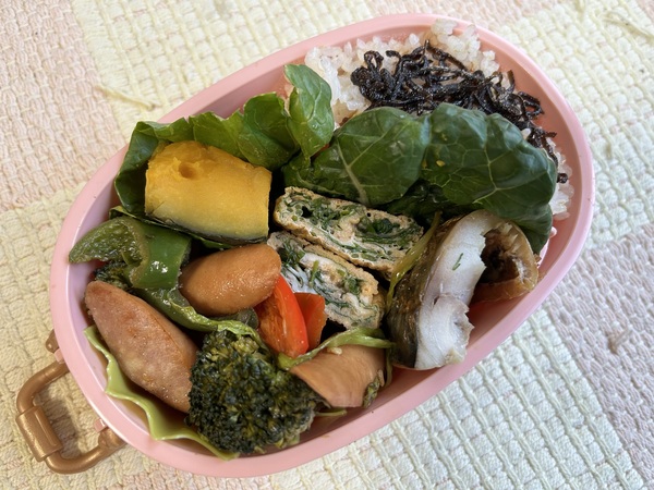 塩サバ、三つ葉入り卵焼き、野菜炒め