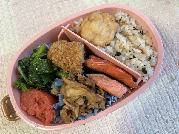 コロッケ、切り干し大根、ほうれん草、紅鮭