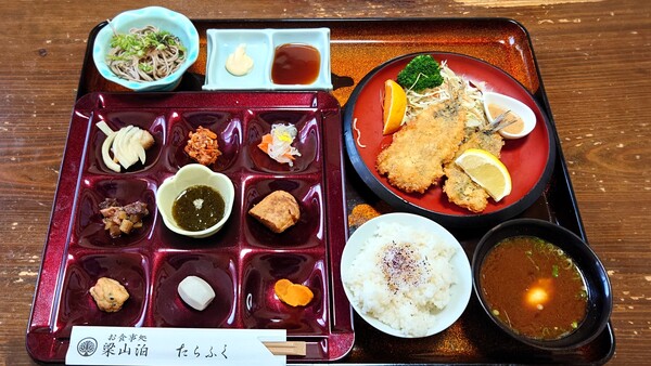 梁山泊たらふく@京都・福知山の日替わり定食(アジフライ)