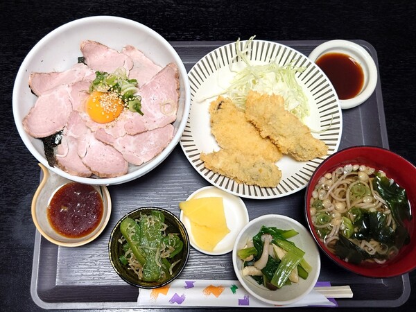> ふじ田@京都・綾部のローストポーク丼とカキフライ定食
